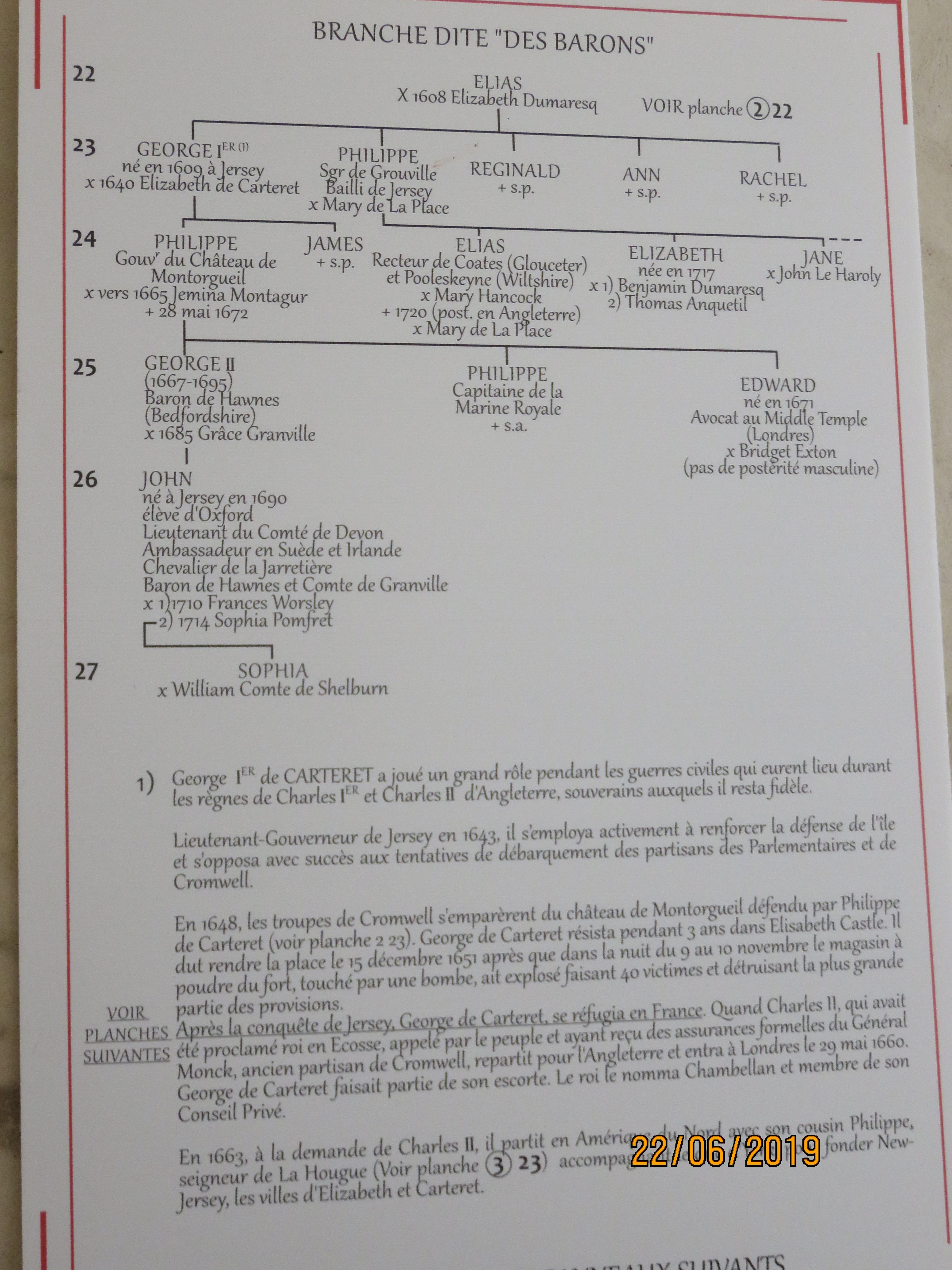 22 to 27 of the Pedigree De Carteret’s displayed in St Louis Chapel 22.6.19